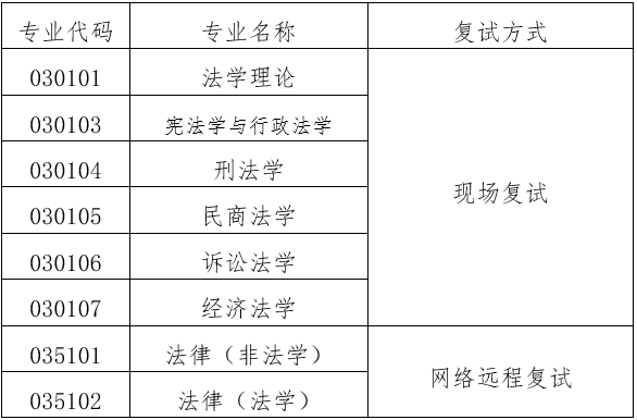 复试内容包括以下几项:①专业笔试。考试科目为法学综合。②专业面试。主要包括:法学综合与英语听力及口语测试。③同等学力加试。